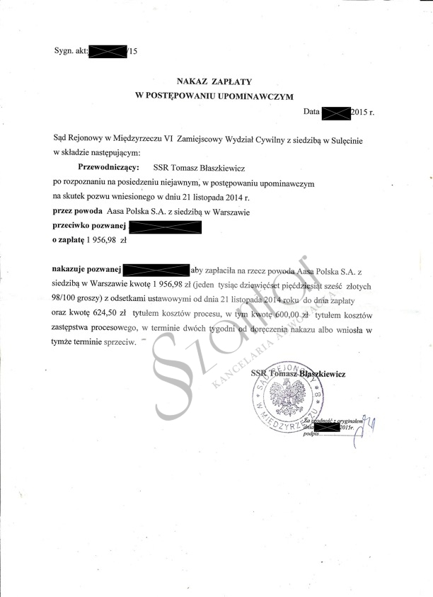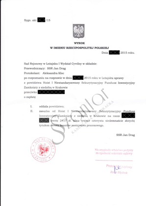 Poniżej retro – nakaz zapłaty w sprawie z Assa Polska, w której skutecznie udało się pomóc konsumentowi będącemu naszym Klientem oraz retro – wyrok oddalający powództwo w całości wytoczone przez Hoist Polska.